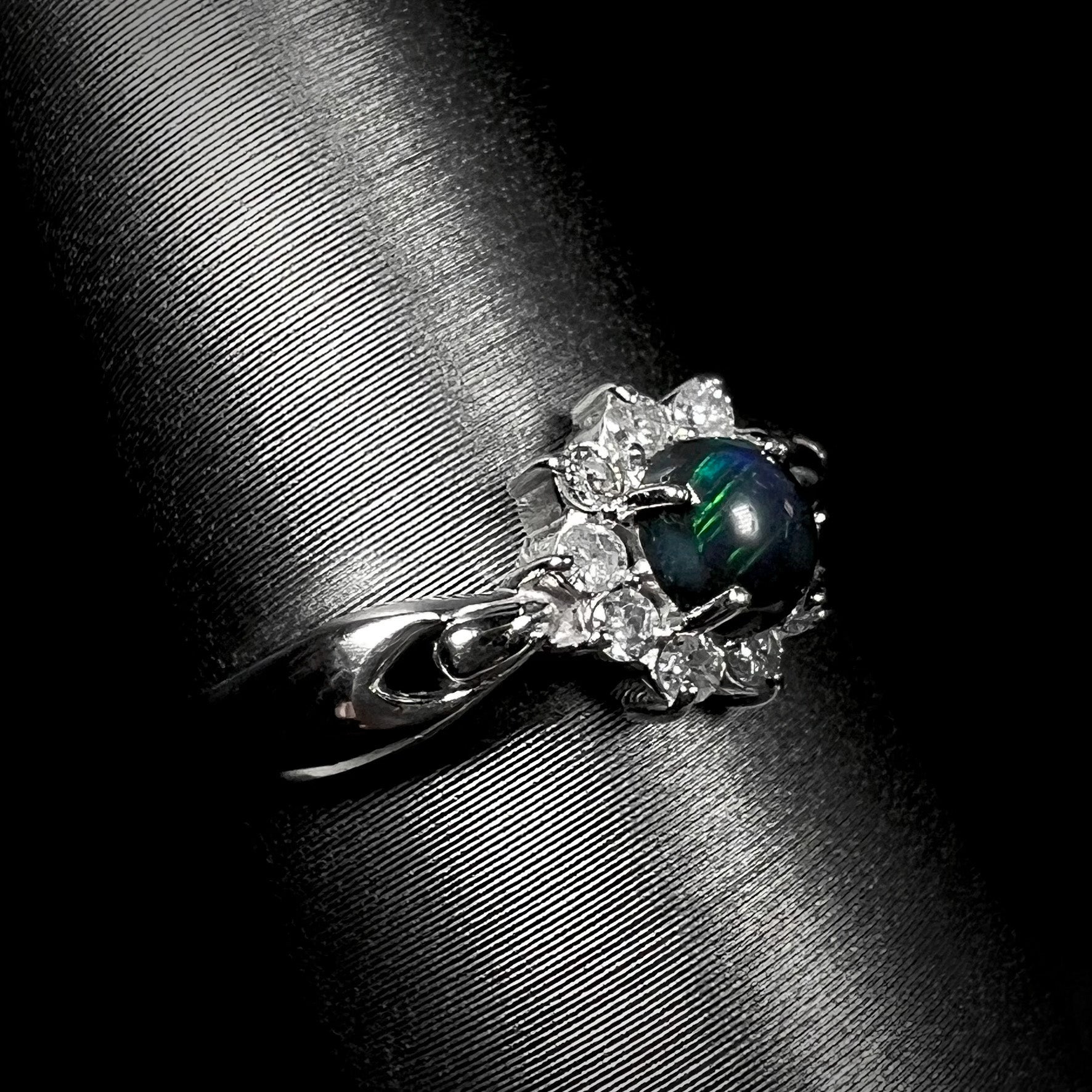 Adelaide | Notably Colorful Ethiopian Opal & CZ Ring in Sterling Silver