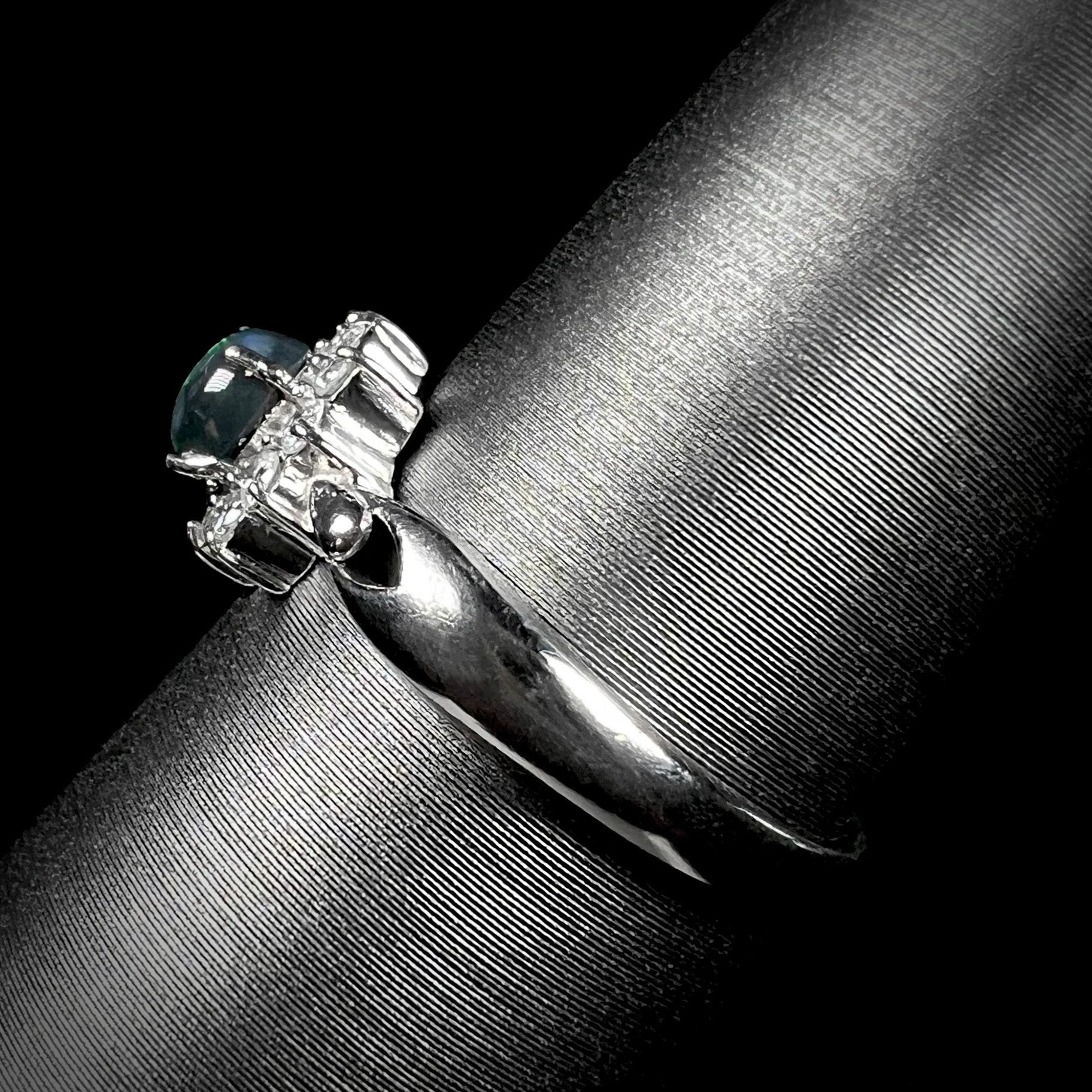 Evelyn | Dainty 0.25ct Black Opal & Diamond Halo Ring in Platinum, c.1980's